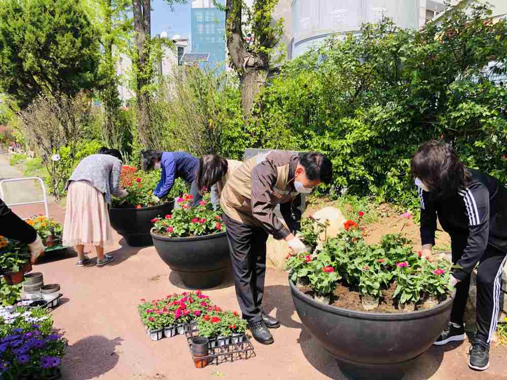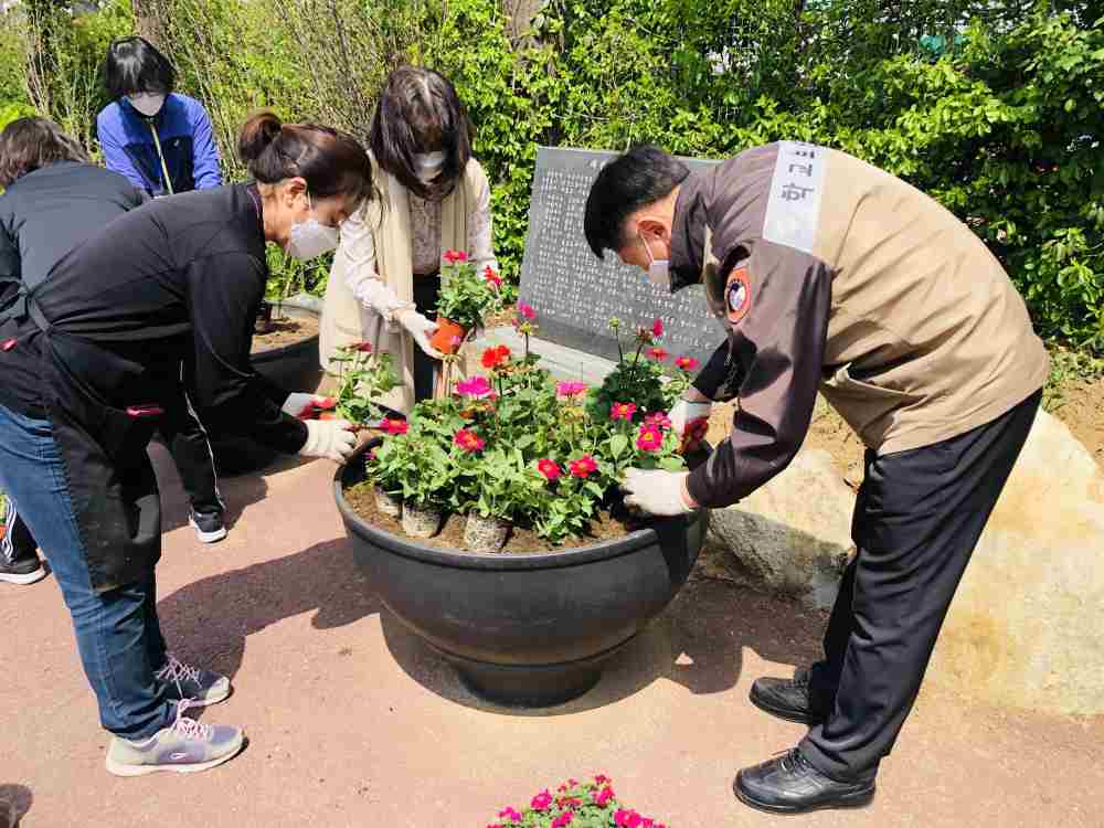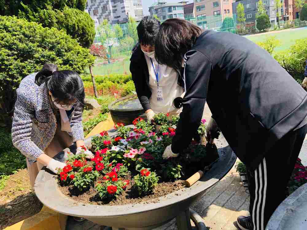 서울신구초등학교(교장 김영주)에서는 다양한 생태 환경교육을 실시하고 있습니다. 4월 9일(금)에는 교직원들이 학교 화단에 모여 화사한 봄꽃을 심었습니다.