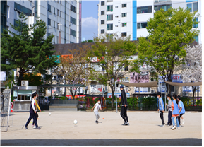 중랑구청 체육청소년과의 지원을 받아 지난 4월 5일(월)부터 11월 25일(금)까지 본교 운동장 및 체육관에서 『2021 신현초 풋살교실』이 운영된다. 4~6학년 학생들에게 신청을 받은 결과 희망자가 많아 왕복오래달리기와 제자리멀리뛰기로 선발하였으며 남학생 15명, 여학생 5명이 참여하게 되었다. 건강 체력을 키우고 축구 여가활동을 경험하며 친구들 간에 긍정적 관계를 형성하는 방법을 자연스럽게 익히는 아이들을 볼 수 있어서 시작부터 많은 기대가 된다.