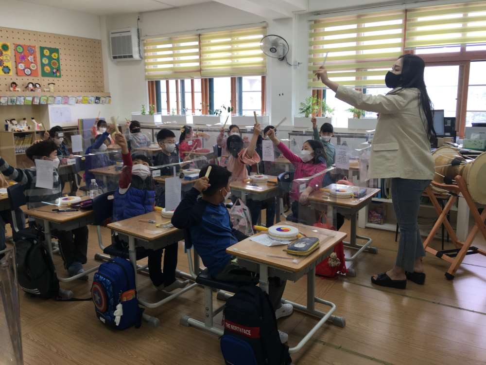 본교 1~5학년 학생들은 1인 1 악기 수업인 [끼 통통 국악 교실]을 통하여 2021학년도 3월 22일부터 열심히 국악 수업에 매진하고 있습니다. ARTE 학교 예술 강사 지원 사업의 일환으로 국악 강사와 담임 선생님의 지도하에 소고와 장구 등 전통 악기 익히기, 전통 민요 부르기 등을 꾸준히 익혀나가고 있습니다. 7월 초까지의 총 10회에 걸친 [끼 통통 국악 교실] 수업을 통해 방현 친구들에게 우리나 라 전통 음악에 대한 이해를 넓히고, 우리 나라의 전통 문화를 더욱 사랑하게 하는 소중한 시간이 될 것입니다. 담당자 :6-2 김묘진 |