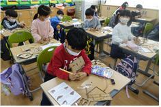 저학년 학생들은 ‘내가 살고 있는 지구가 아파요’ 주제로 다육식물 화분 만들기, 장바구니 만들기, 미니크로스백 꾸미기, 와이어로 꾸미는 잔디 인형, 개구리 개운죽 화분 만들기, 장수풍뎅이 키우기, 컬러링 에코백 만들기 등에 연중 참여하고 있습니다. 친환경적인 물건을 사용하고 자연 속에서 배우며 학생들은 건강한 지구 만들기에 동참하고, 지구를 생각하고 위하는 마음을 키워나가고 있습니다.