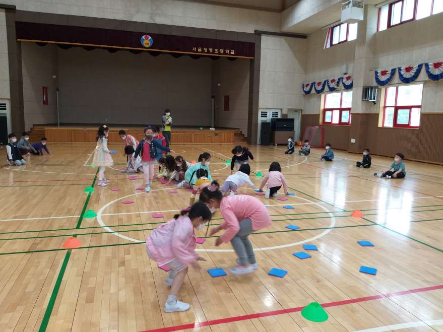 4월 26일(월) ~ 4월 30일(금) 중 학년 등교일에 맞추어 학급별로 진행하는 체육대회를 계획하여, 운동장 및 체육관에서 방역 규칙을 지켜 거리두기를 하며 할 수 있는 다양한 놀이 및 경기를 학급별로 진행하였고, 어린이날을 축하하는 기념품도 선물로 받아 더욱 즐거운 시간이 되었다.