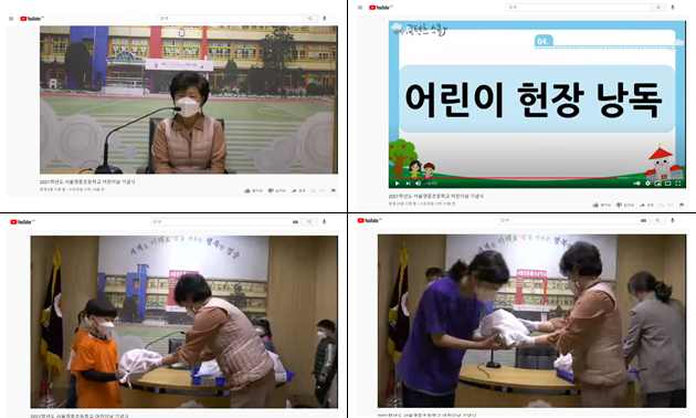 서울영중초등학교(교장 남미애)는 4월 28(수)에 유투브 라이브로 어린이날 기념 꿈담 한마당(기념식)을 방송하였습니다. 등교하는 1, 2, 5, 6학년은 교실에서 기념식을 TV로 시청했고, 등교하지 않은 3, 4학년은 가정에서 유투브 학교 채널로 실시간 방송을 시청했습니다.