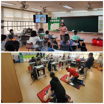 4월 6일(화) 6학년을 대상으로 심폐소생술 교육을 각 교실에서 방역 수칙을 준수하며 실시했습니다. 영등포구 보건소 의약과의 지원으로 (주)생명의 별에서 나오신 강사님들께서 심폐소생술(CPR)을 이론교육과 인형을 대상으로 한 실습을 통해 익혀보도록 지도하였습니다. 응급 상황 발생 시 지체 없이 대처하여 소중한 생명을 살릴 수 있는 4분의 기적을 기억하고 실천하기를 기대합니다.