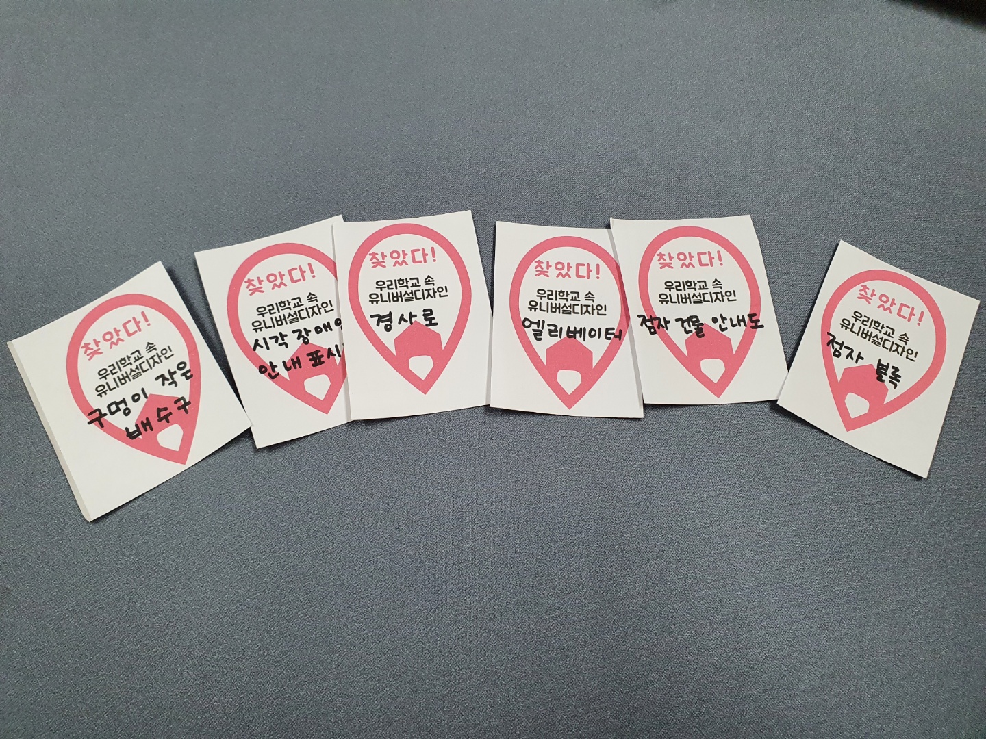 또한 누구나 편리하게 이용할 수 있는 유니버설 디자인에 대해서 학습하고 우리 학교 곳곳에 ‘유니버설 디자인’이 담겨있는 물건, 장소를 찾는 퀴즈대회를 실시하였습니다.
