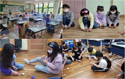 6학년은 풍선자동차 만들기, 공중 무지개 착시팽이를 만들 예정입니다.(5월 말 실시 예정) 풍선자동차 만들기를 통해 작용 반작용의 원리에 대해 알아보고, 자동차의 속력을 측정해 보겠습니다. 공중 무지개 착시팽이를 통해 자석의 성질의 이용, 착시효과에 대해 알아보겠습니다.