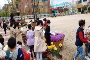 서울가곡초등학교[교장 이태구]에서는 4월 9일(금)에 1학년 학생들의 봄 친구들 살펴보기 야외 수업이 있었습니다. 꽃이 만발한 교정에서 1학년 친구들이 나와서 봄에 자라는 식물과 꽃을 관찰하고 그려보는 즐거운 수업을 진행하였습니다. 우리 학교는 야생화가 많은데 꽃이름 표찰을 보고 무슨 꽃인지를 쉽게 알 수 있었습니다. 봄의 친구들을 살펴보는 어린 학생들의 모습에서 따스한 봄이 느껴집니다.