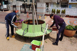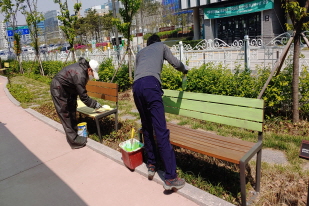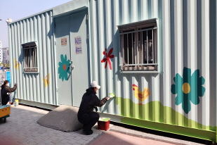 등을 그려서 산뜻하고 고운 색상의 창고로 칠해졌습니다. 뒤뜰의 의자도 노란색, 연두색으로 칠했더니 에코스쿨과 잘 어우러져 보기가 좋아졌습니다. 그리고 운동장에 있는 원형의자도 페인팅을 하였습니다. 학교가 한결 깨끗해지고 밝아져서 지나는 학생들의 표정도 밝게 보입니다.