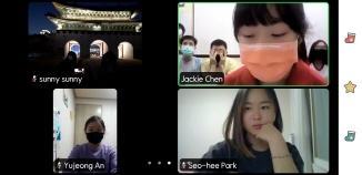 신화중 국제교류 동아리 학생 10명이 금요일 방과 후 저녁 8시부터 광화문과 각 가정에서 최근에 국제교류 partnership을 맺은 대만의 학교와 첫 원격 화상 수업을 가졌다. 대만에 있는 학교 학생들과 처음 만나는 시간이었기에 학생들 개인 소개와 관심사 등에 대해 얘기했다. 아울러 신화중 학생들은 요즘 세계적으로 관심이 높아지고 있는 우리말의 기원을 설명하기 위해 세종대왕에 대한 소개와 광화문에 있는 세종대왕상과 주변의 야경을 실시간 전송했으며, 대만 학생들은 대만의 다양한 전통 축제에 대해 소개했다.
