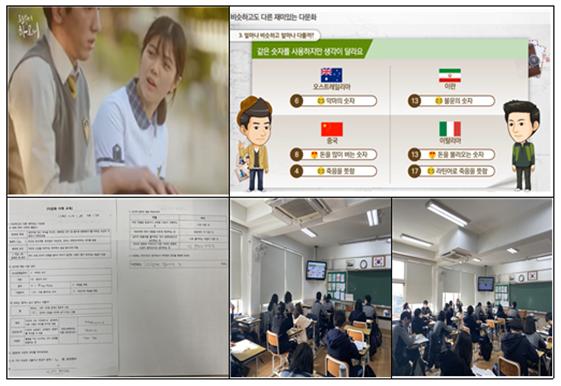 이번 다문화 이해 교육에서는 비슷하고도 다른 재미있는 다문화를 주제로 세계 여러 국가들의 다양한 문화에 대해 알아보았다. 우리에게 익숙한 문화들이 다른 국가에 존재하기도 하고, 같은 숫자나 행동 등을 서로 다르게 해석하고 이해할 수 있다는 점을 통해 다른 나라의 다양한 문화를 이해하고 차별이 아닌 차이를 인정하는 진정한 세계 시민의 자세에 대해 배워볼 수 있었다. 또한 다문화 시대에서 중요한 가치 중 하나인 공존의 의미에 대해 깊이 생각해보고, 존중과 조화를 통해 소수들의 고립이 아닌 ‘더불어 살아가는 사회’를 만들기 위해 노력할 것을 다짐하는 시간을 가졌다.