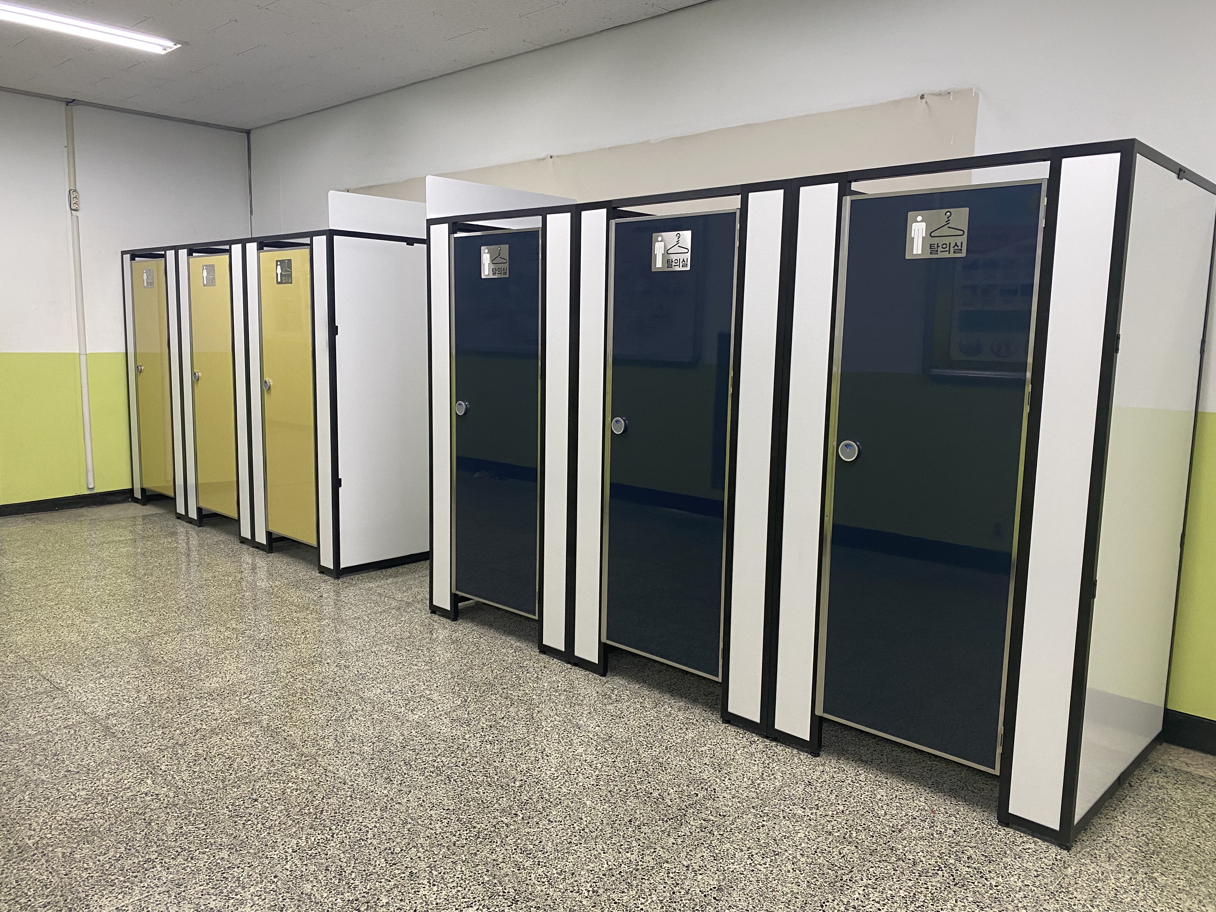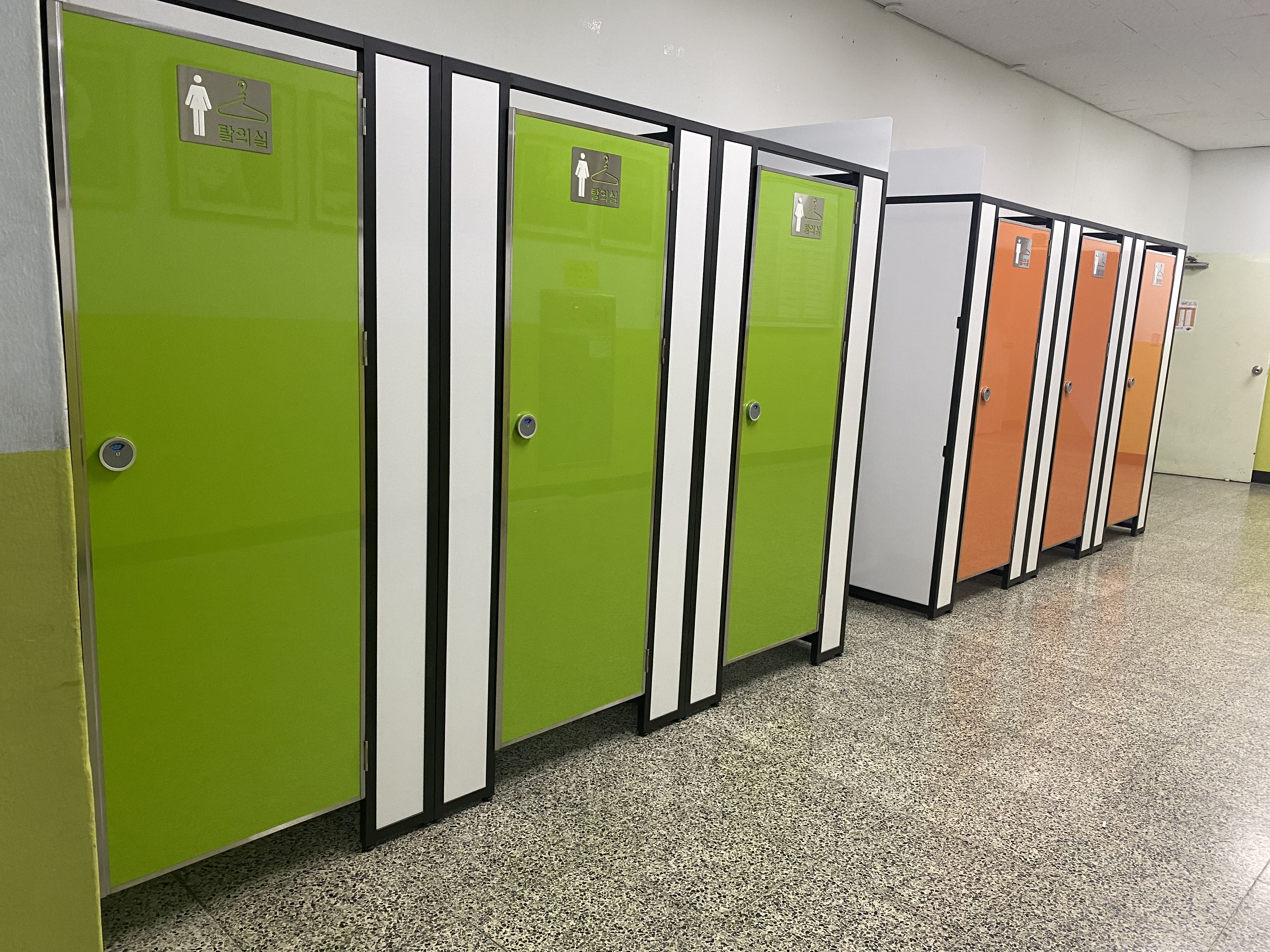 탈의실이 없었던 2, 3층에 알록달록 너무 예쁜 탈의실이 설치되고..
