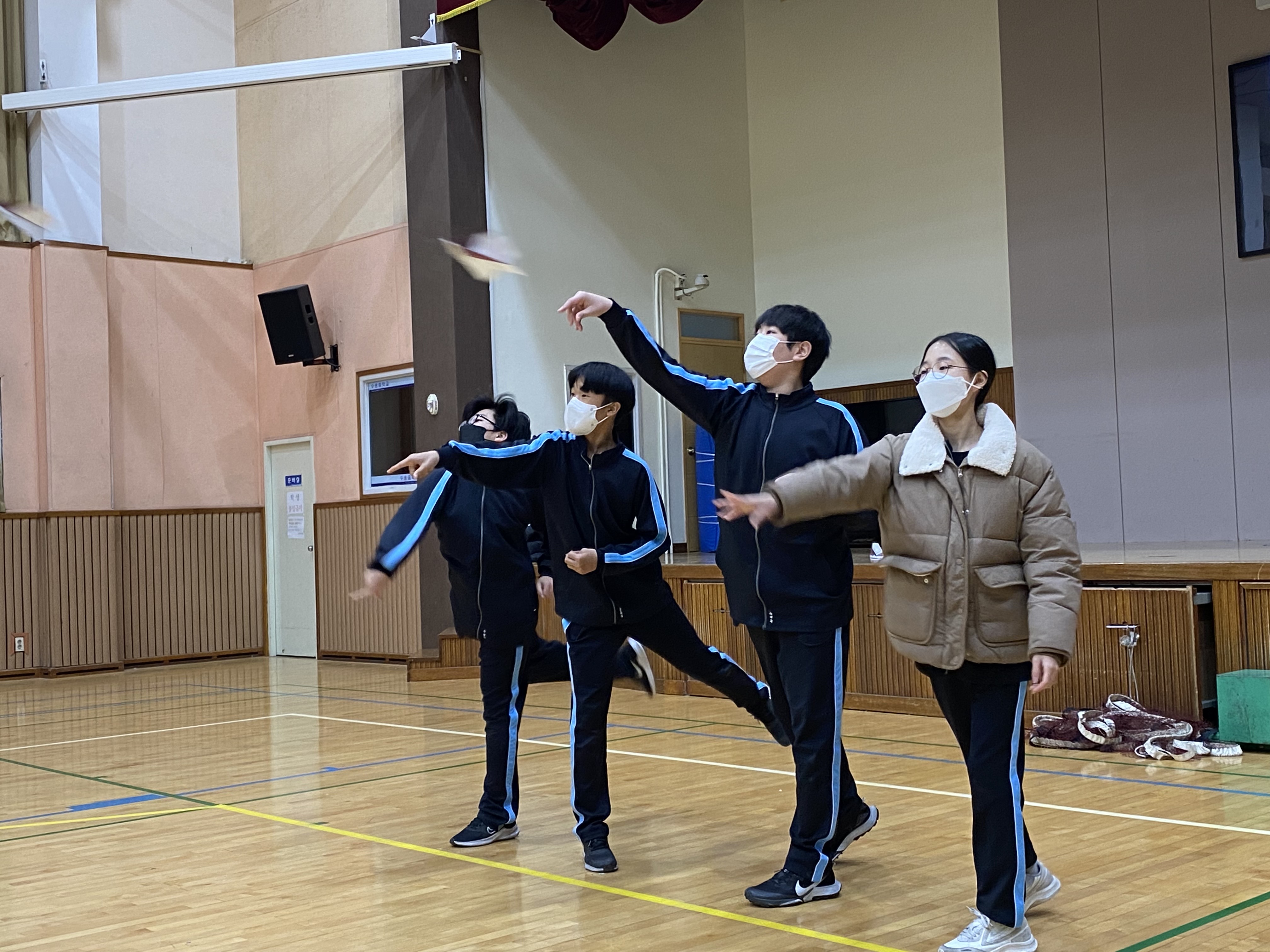 예선을 거쳐 반 대표로 뽑힌 우리의 종이비행기 날리기 선수들!