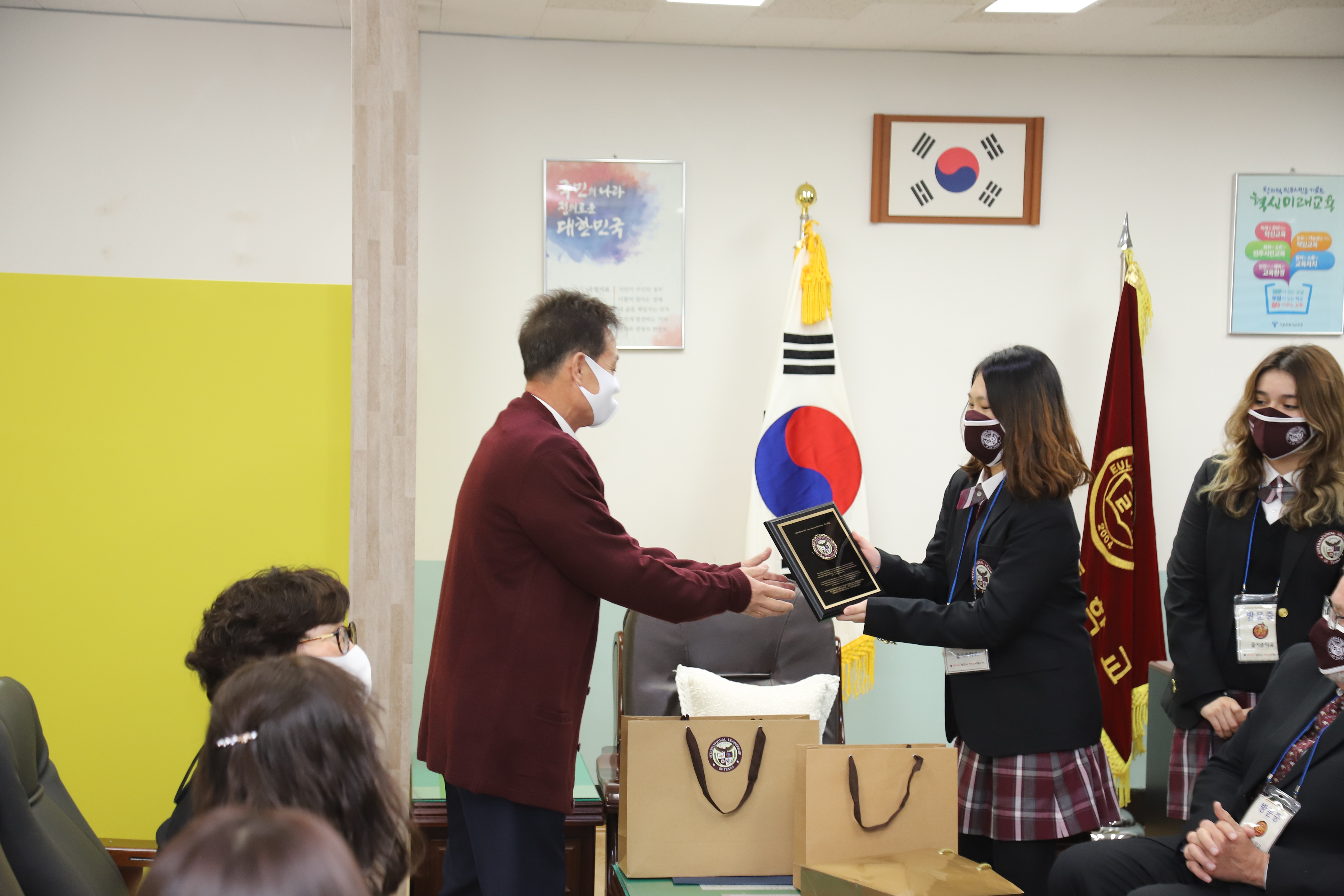 [ 외빈 선물 증정식 및 ILTEXS 교육활동 협약식 감사패 및 가디건 선물 증적식]