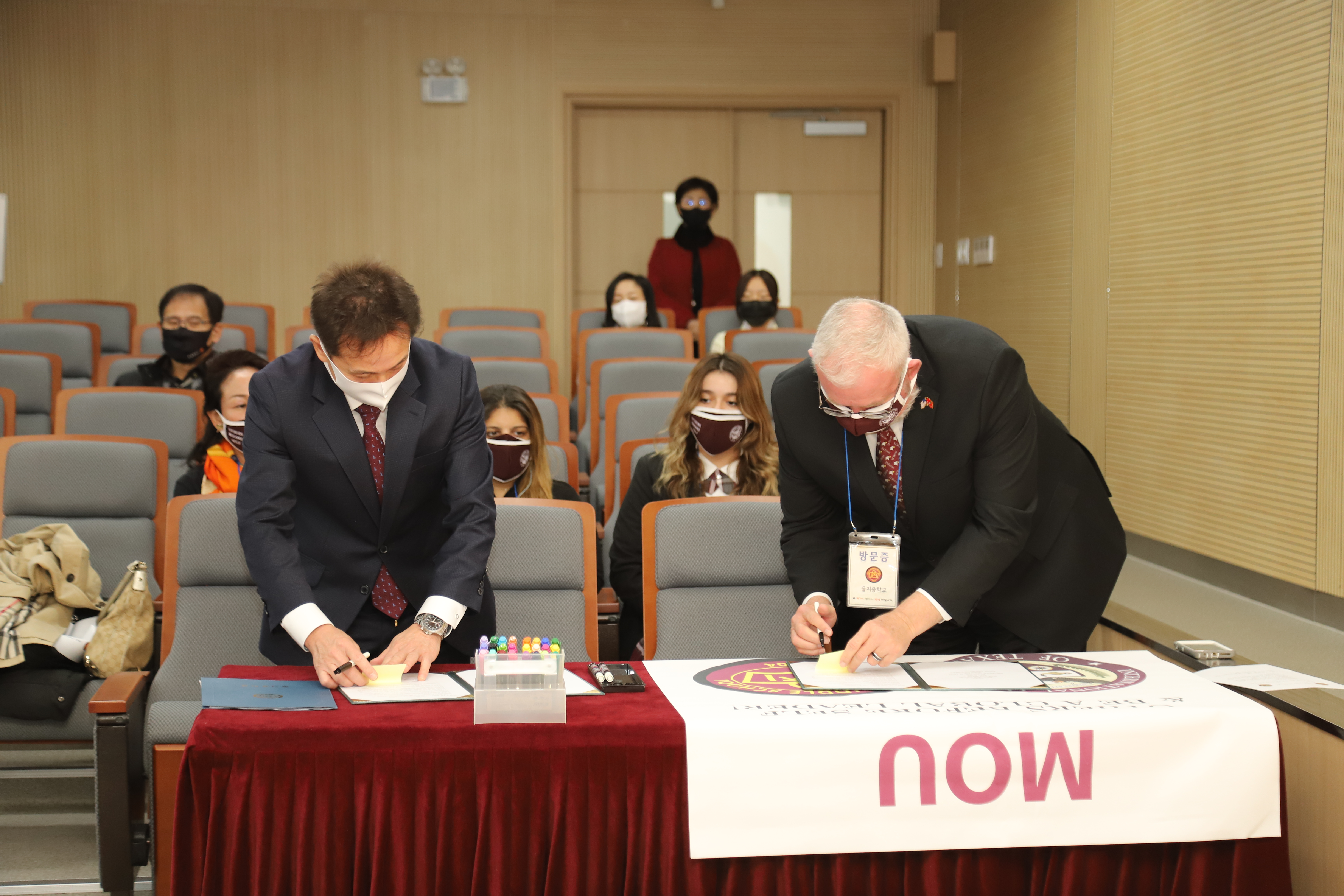 [MOU 깃발 서명 및 파트너 학교와의 깃발 교환]