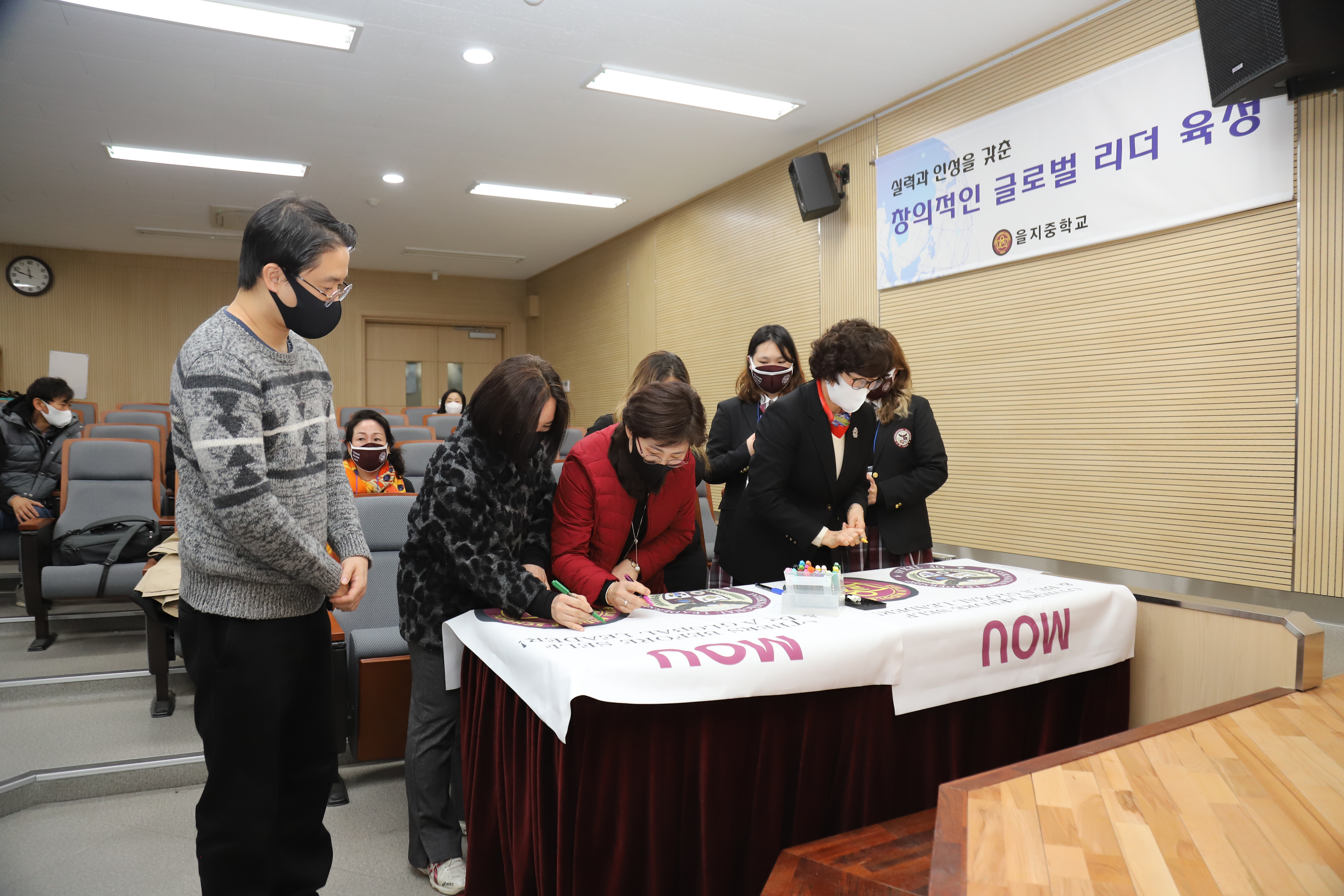 을지중학교(교장 임길선)에서는 실력과 인성을 갖춘 창의적 글로벌 리더 양성을 학교 경영 방침으로 세계시민정신 함양을 모토로 영어교육활동과 더불어 다양한 국제이해교육활동을 실시하고 있다. 특히 12월 3일에 본교에서 실시된 미국 ILTEXAS 와 2022년 3월 2일부터 2027년 6월 7일까지 교육활동교류를 위한 협약식(MOU)은 2021학년도에 해 왔던 국제수업교류 및 세계시민교육활동의 하이라이트라고 할 수 있다.