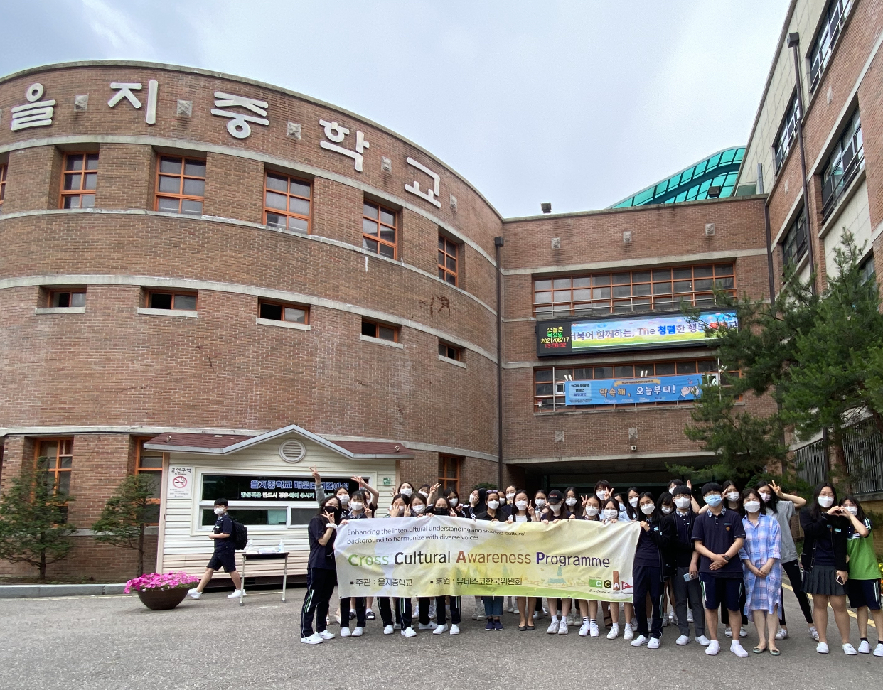 □ ILTEXAS 와의 MOU, 말레이시아 학교와의 국제수업교류, 한국유네스코연맹 주관 외국인과 함께하는 문화교실(Cross-Cultural Awareness Programme)과 민주시민교육을 위한 동아리 모의유엔의 운영을 통해 펜데믹에도 온라인과 오프라인을 병행한 블렌디드 교육활동을 실시할 수 있어 을지중학교 교직원들과 학생들은 더욱 활발한 한해를 보낼 수 있었고 80여명의 교직원과 780여명의 학생이 행복하고, 학부모가 안심하며, 교사가 보람을 찾는 지역사회 의 중심으로서 학교의 역할을 수행하였다. 을지중학교는 학교가 중심이 되어 지역사회, 우리나라, 지구촌에 좋은 영향을 주는 국제수업교류활동을 통해 파트너 학교와의 교류가 의미 있는 시간이 되길 바라는 마음이며 2022학년도부터 본교는 ASP네트워크 유네스코 학교에 선정되어 학생, 학부모, 교직원이 모두 참여하는 지속가능한 세계시민교육 활동을 전개할 계획이다.