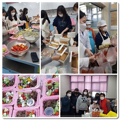 <감사와 나눔 이벤트>로 우선 대형 현수막에 ‘지난 3년간 따뜻한 밥과 맛있는 반찬 만들어주셔서 감사합니다’ ‘저희들의 등굣길을 안전하게 지켜주셔서 감사드립니다’ ‘깨끗한 환경에서 건강하게 지낼 수 있게 해주신 분들께 감사드립니다.’라는 내용들을 담았습니다.