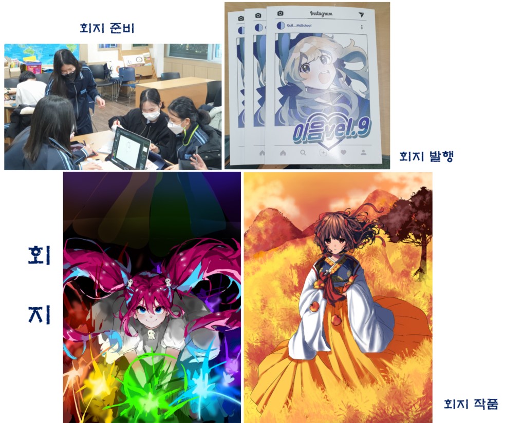 만화그리기반 학생들은 학년말에 ‘작은 전시회’와 ‘회지 발행’을 통해 추억과 더불어 자신감과 자존감도 쌓는 소중한 시간을 가졌다.