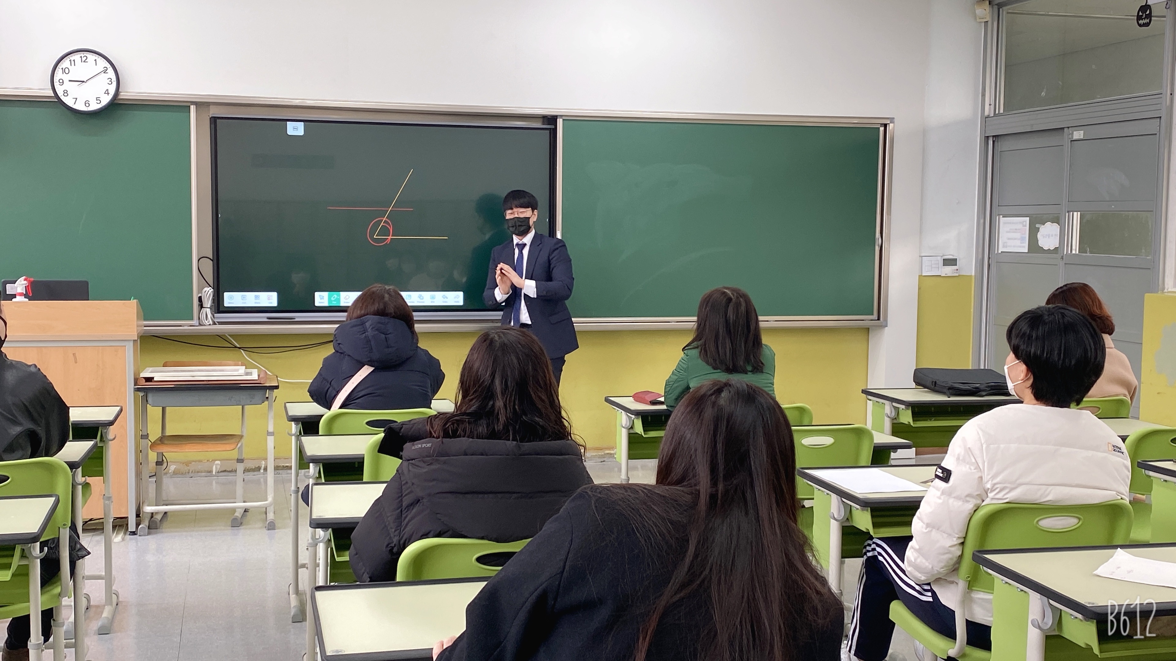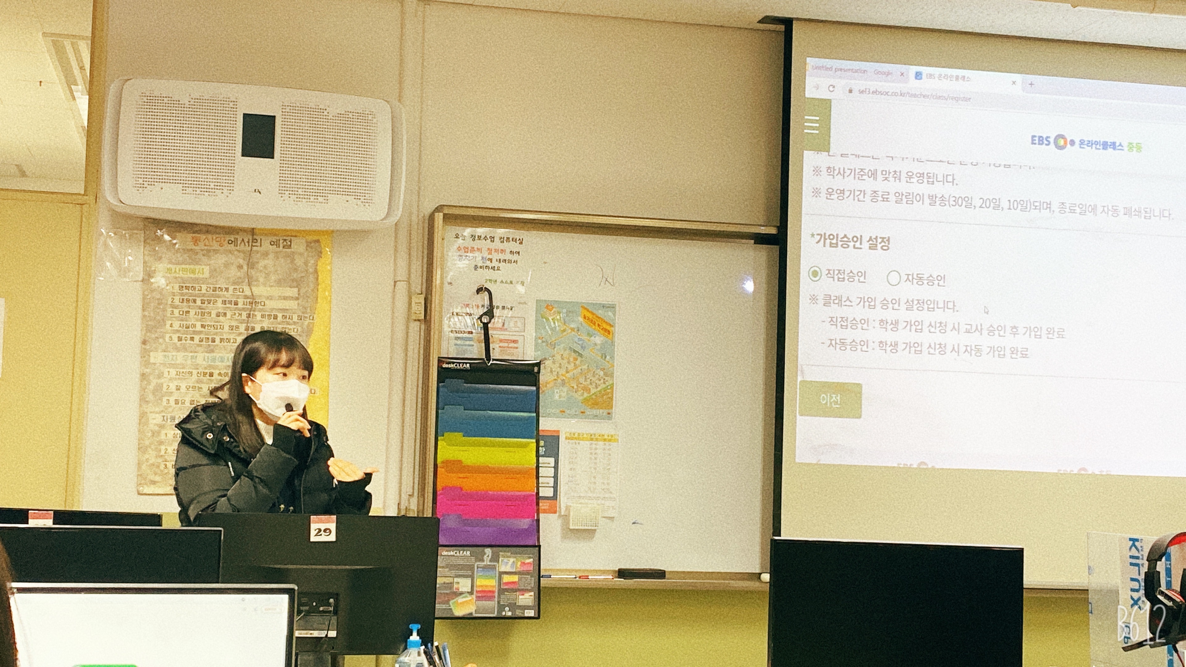 수송중학교 1학년 교실에 전자칠판을 설치해주신 업체인 eSOL에서 오셔서