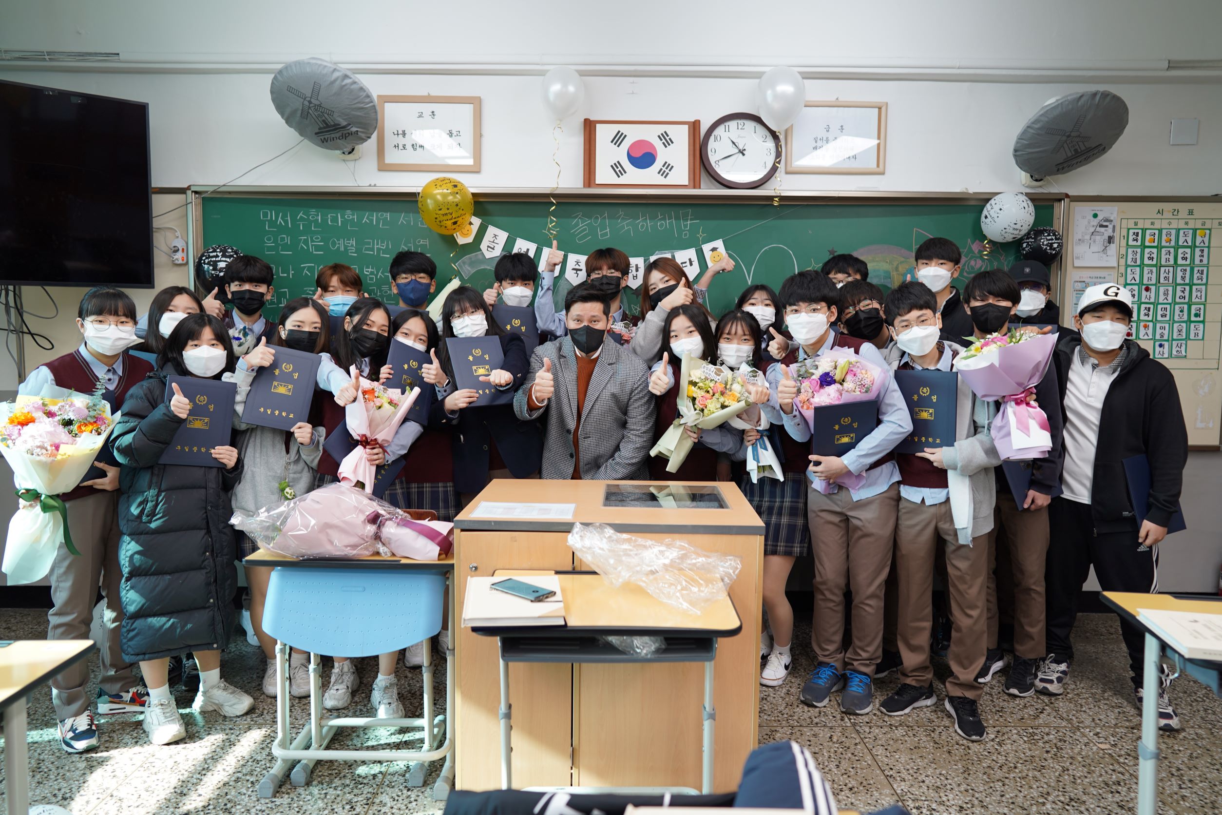 구일중학교(교장 장은진)는 지난 1월 27일(목) 3학년 학생들의 졸업식을 가졌다. 3개년의 중학생활 중 2년을 코로나19 상황 속에서 보내야 했지만 건강하게 졸업한 학생들에게 박수를 보낸다.