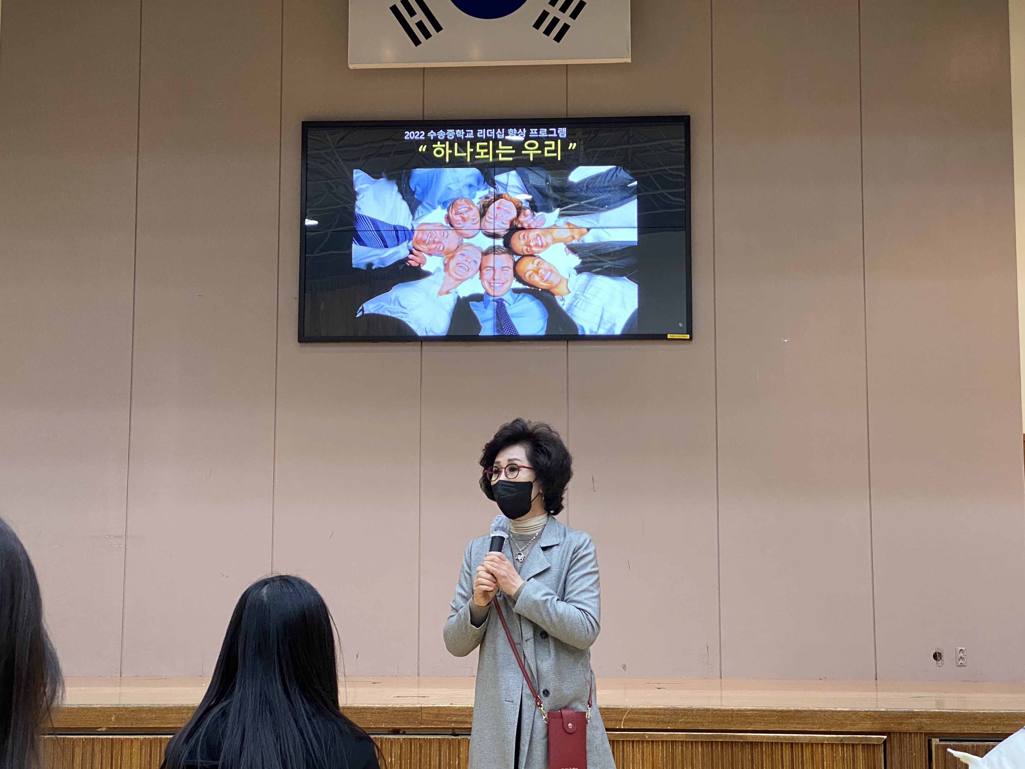 먼저 교장선생님께서 우리 빛나는 수송 학생 리더들에게