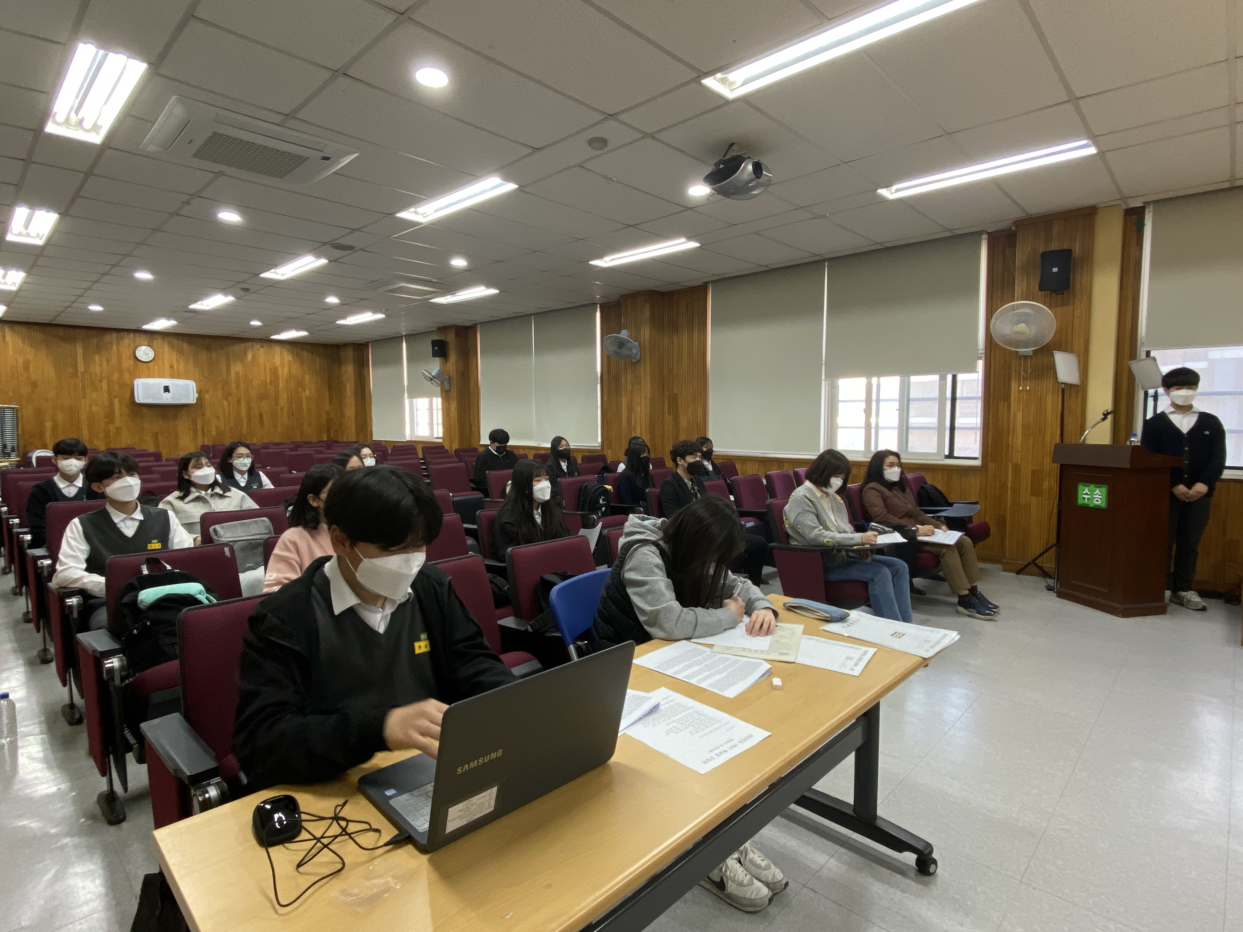 시청각실에서 교장선생님과의 대화 시간을 마련하였습니다.