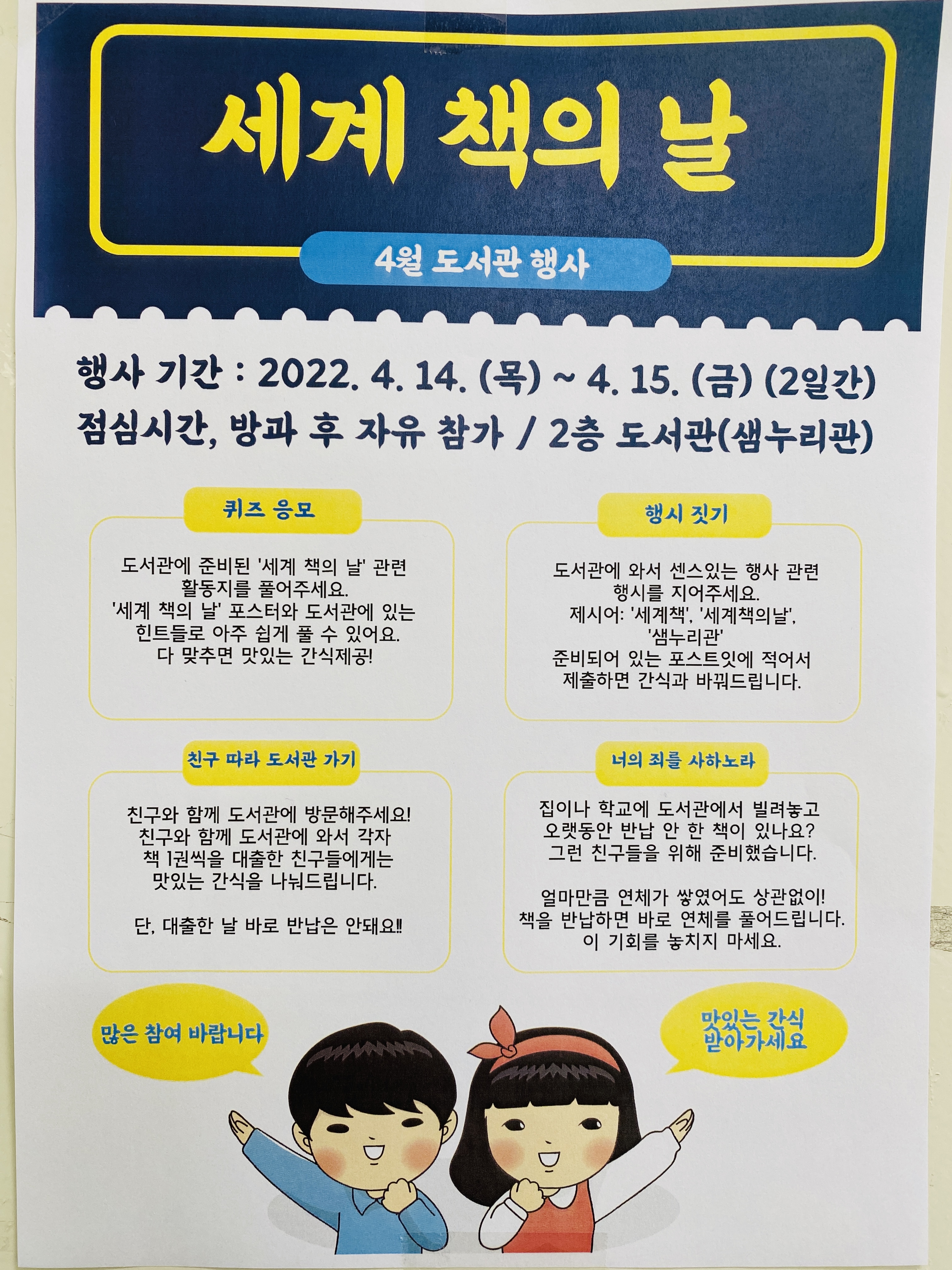 4월 책의 날을 맞이하여 다양하고 재미있는 행사들을 진행하고 있습니다~