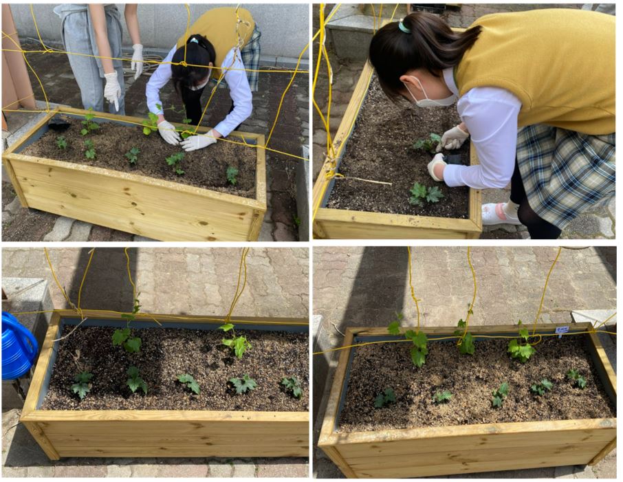 이 프로젝트는 4월~ 9월까지 이루어지는 장기프로젝트로 현재 기술시간에 플라스틱의 성질과 특징 및 플라스틱의 위험성 환경 문제 교육이 이루어지고, 수세미 식물 재배 환경을 조성하고 식물을 심은 단계까지 진행이 되었다.