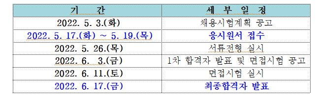 <2022년 제1회 교육공무직원 공개경쟁채용시험 일정>