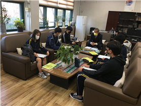 학급 친구들의 마음을 모아 정리한 내용을 손에 들고 교장실에 들어선 학급 회장 및 학생회장단은 교장 선생님과 많은 선생님들께서 사랑으로 가르쳐주심에 먼저 감사의 인사를 전하였고, 이어 저마다 궁금했던 질문과 의견을 드리고 교장 선생님의 말씀을 기록하고 정리했다.