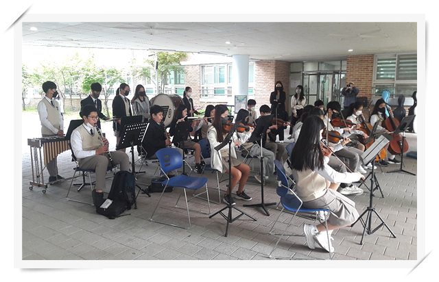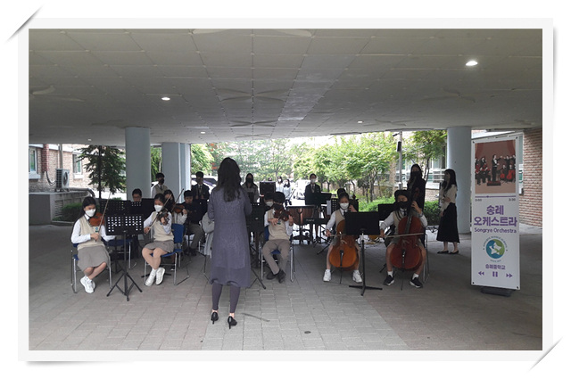 20분 정도의 짧은 연주 시간이었지만 등굣길에 펼쳐진 작은 음악회에 많은 학생과 선생님들이 발걸음을 멈추고 곡이 끝날 때마다 힘찬 박수와 함성으로 응원해주었다. 올해는 5월 1일 개교기념일이 일요일이어서 지나칠 뻔했다며 다들 음악회 덕분에 개교기념일의 의미를 되새겼다는 반응이었다. 오케스트라의 조화로운 선율 가득한 연주회가 코로나 19로 지친 송례 가족들에게 설레는 5월을 여는 행복한 시간을 선사했기를 기대한다.
