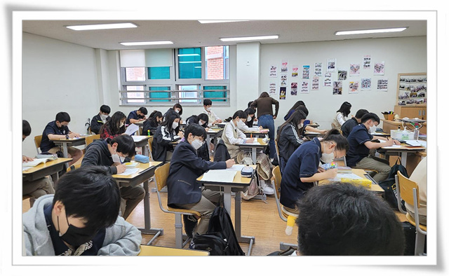 4월 29일(금)에는 진로 가치관 형성을 위한 독서 활동으로 ‘진로 독서 한마당’ 행사를 하였다. 사전 공개한 진로 도서 목록 중 1권을 선택하여 읽은 후 당일에는 책 소개하기 및 서평 쓰기 등의 독후활동을 진행했다. 덕분에 책을 열심히 읽고 고민한 노력이 엿보이는 창의적이고 우수한 작품들이 많이 나왔다.