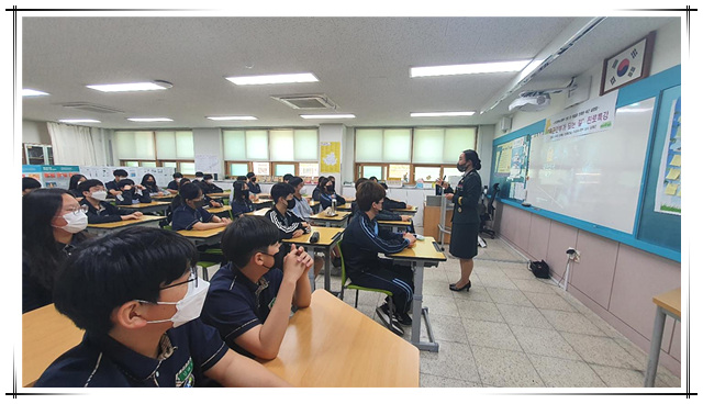 진지하게 강연을 경청한 학생들은 “꿈에 대한 고민이 있었는데, 강연을 듣고 꿈을 좀 더 확실히 정할 수 있어서 좋았다.”, “직업 이야기를 생생하게 해 주셔서 군인이신 부모님을 더 이해하는 계기가 되었다.” 등 벅찬 소감을 함께 나누며 강연을 마쳤다.