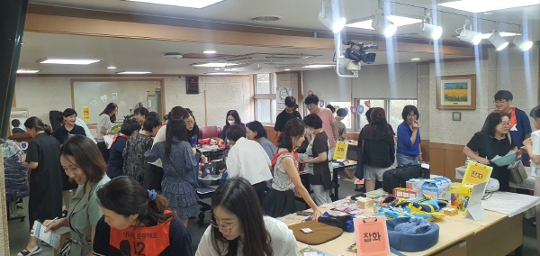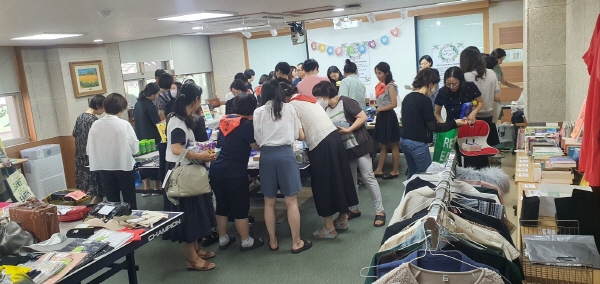 서울구룡초등학교(교장 소양호)는 7월 10일(월) 구룡초 회의실에서 '희망 나눔 교직원 자선바자회'를 개최하였습니다. '어려운 환경에 처한 본교 재학생을 돕자'라는 취지에 공감한 많은 교직원이 자발적으로 소장품과 음식을 기증하였고 홍보 및 판매 활동에 동참하였습니다.