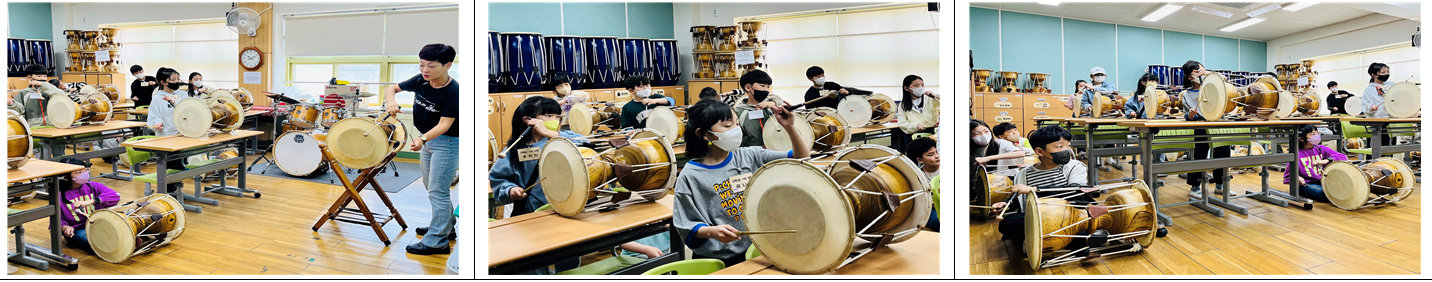 서울양강초등학교(교장 김수정)에서는 4월 17일부터 매주 월요일 장구 수업을 실시하고 있습니다. 3학년 학생들은 국악 선생님과 함께 장구의 역사와 기본 연주법을 알아보았습니다. 앞으로 휘모리장단, 자진모리장단, 세마치장단, 굿거리장단, 별달거리장단 등을 음악에 맞추어 연주할 예정입니다. 음악실에서 흥겨운 장단과 함께 국악의 아름다움을 깨닫고, 스트레스를 해소하고 있답니다. 마지막 수업인 열아홉 번째 시간에는 멋진 장구 실력을 뽐낼 수 있을 것 같아 벌써 기대됩니다.