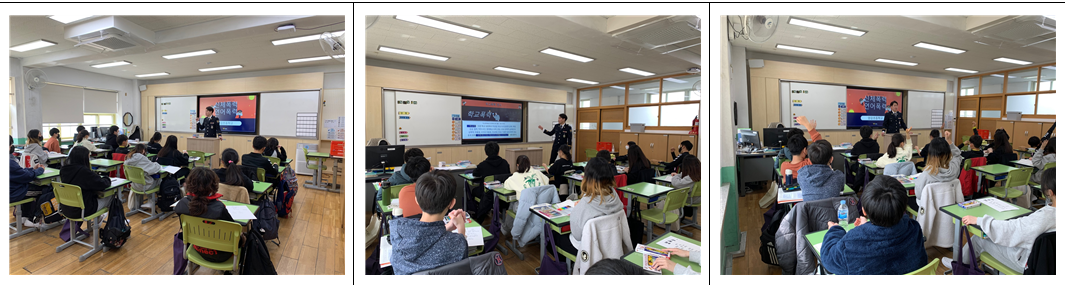 서울양강초등학교(교장 김수정)에서는 지난 3월 17일 (금), 양강초등학교에서는 5, 6학년들을 대상으로 학교폭력 예방에 관한 수업을 진행하였습니다. 이를 위해 양강초등학교 담당 강성윤 경찰관님께서 5, 6교시에 수업을 진행하여 주셨습니다. 수업에서는 학교폭력의 종류와 왜 학교폭력을 해서는 안되는지에 대하여 알아보았습니다. 언어로 친구의 기분을 나쁘게 만들거나, 욕설을 사용하는 언어폭력, 인터넷 상에서 누군가에게 해가 되는 행동을 하는 사이버폭력 등 신체폭력 뿐만아니라 무심코한 다른 행동들로도 학교폭력이 될 수 있다는 것을 알게 되었습니다. 학생들은 ‘학교폭력에 대해 한번 더 생각해볼 수 있어서 좋았다. 절대하면 안되겠다고 생각했다.’등의 반응등을 보였습니다. 이번 교육을 통해 학교폭력이 얼마나 안좋은 일인지, 또한 절대 해서는 안된다는 사실을 5,6학년 학생들이 다시 한번 깨닫게 되었습니다. 이러한 수업을 진행함으로써 학교폭력으로부터 아무도 피해받지 않고 모두가 행복한 따돌림없는 양강초등학교에 한발짝 더 다가가게 된 것 같았습니다. (6-1 남은서)