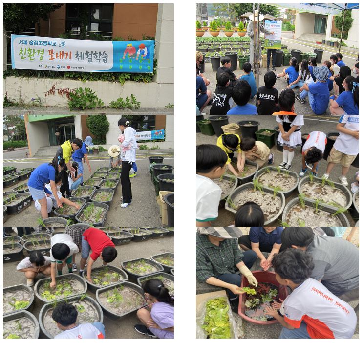 6월 2일(금) 서울송정초등학교(교장 한광현)에서는 4학년 학생들이 정문 쪽 텃논에서 우렁이와 함께 친환경 농법으로 모내기 체험을 했습니다. 전라남도 고창군에서 오신 농부님들의 도움으로 직접 고무상자에 모를 심어보는 활동으로 농부들의 삶을 조금이나마 체험해보는 뜻 깊은 시간이었습니다.