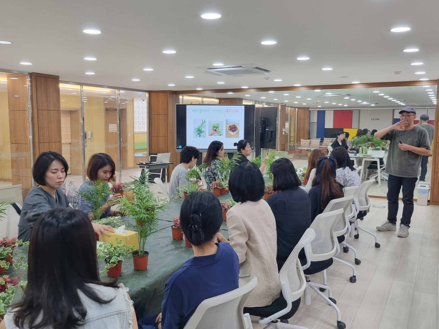 연수에 참여한 학부모님들은 그림책을 활용하여 자녀 대화법에 대해 이야기를 나누었고, 식물을 키우며 가족 간 대화하는 법도 같이 알아보았습니다. 또한 식물을 직접 심으며 정서⦁심리 치유와 힐링의 시간을 가졌습니다.