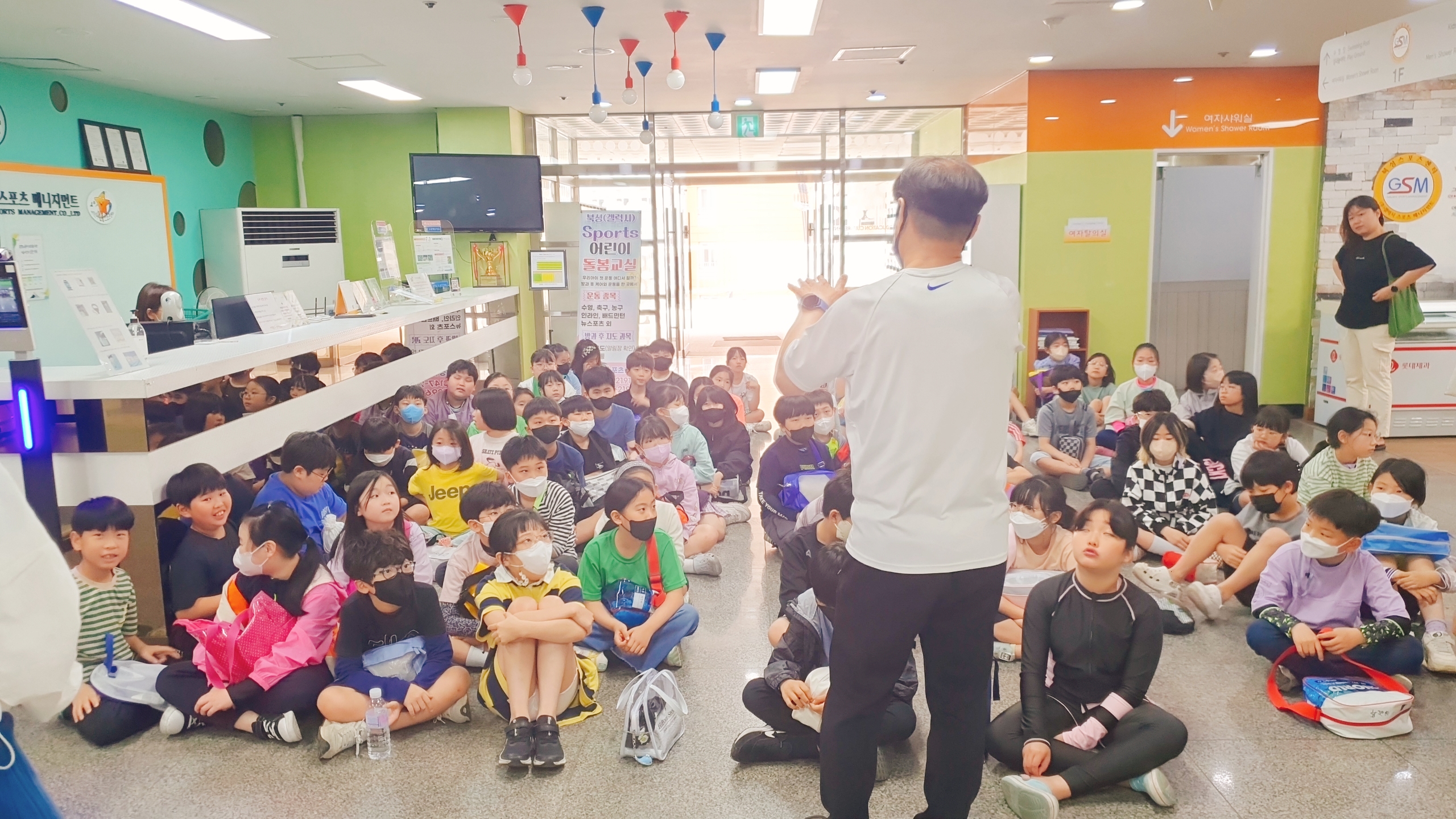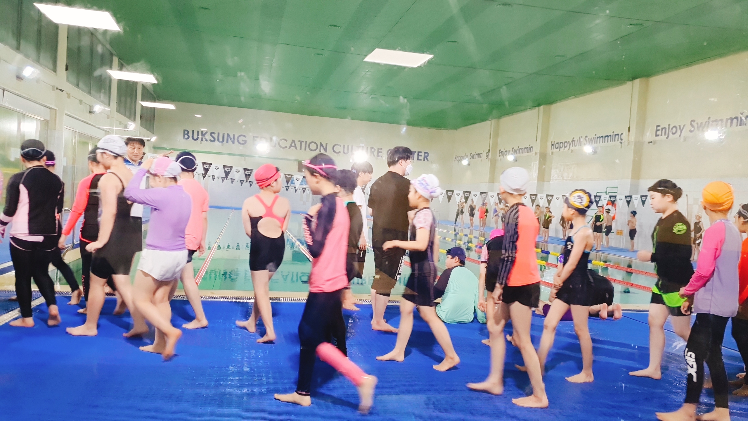 서울금화초등학교(교장 엄수경) 3, 4학년 학생들이 5월 15일(월)부터 5월 25일(목)까지 북성 어린이 전용 스포츠센터 수영장에서 생존 수업 강습을 받았습니다. 수업 교육 전 학생들은 담임선생님께 수영장 안전에 대해 배우고 수영 교육에 임하였습니다. 학생들은 첫날 준비운동 후 테스트를 통해 수준별로 그룹을 나누어 수영 교육을 받았습니다. 이번 생존 수업 강습은 물에 대한 적응뿐 아니라 생존수영 및 간단한 수영법을 익힐 수 있도록 진행되었습니다.