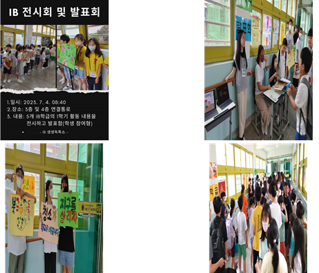 이러한 전시회 및 발표회를 통해 환경, 과학, 문화 등 다양한 분야에 대한 관심을 갖고, 이러한 주제들을 깊이 있게 이해하고 분석하는 기회일 뿐 아니라, IB 교육 철학의 핵심인 '발견하고, 탐구하고, 공유하다'는 원칙을 실천할 수 있어서 더 의미가 있었습니다.