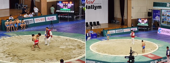 지난 8월 8일(화)부터 8월 11일(목)까지 3일 동안 강원도 춘천시 한림대학교에서 제9회 춘천소양강배 전국장사씨름대회(초등부)가 열렸습니다. 본교 학교운동부 학생선수들은 이 대회에서 좋은 성적을 얻기 위해 방학 중임에도 불구하고 열심히 훈련을 하였습니다. 맹렬한 더위에도 불구하고 열심히 훈련을 한 결과로 단체전 8강, 개인전 경장급 동메달(6학년 이시혁 학생) 1개라는 훌륭한 성과를 얻었습니다. 전국대회인 만큼 전국의 수 많은 강자들이 출전한 치열한 경기였음에도 열심히 싸워 좋은 성적을 거두고 돌아온 세곡초등학교 학교운동부 학생들에게 많은 응원과 격려 부탁드립니다.