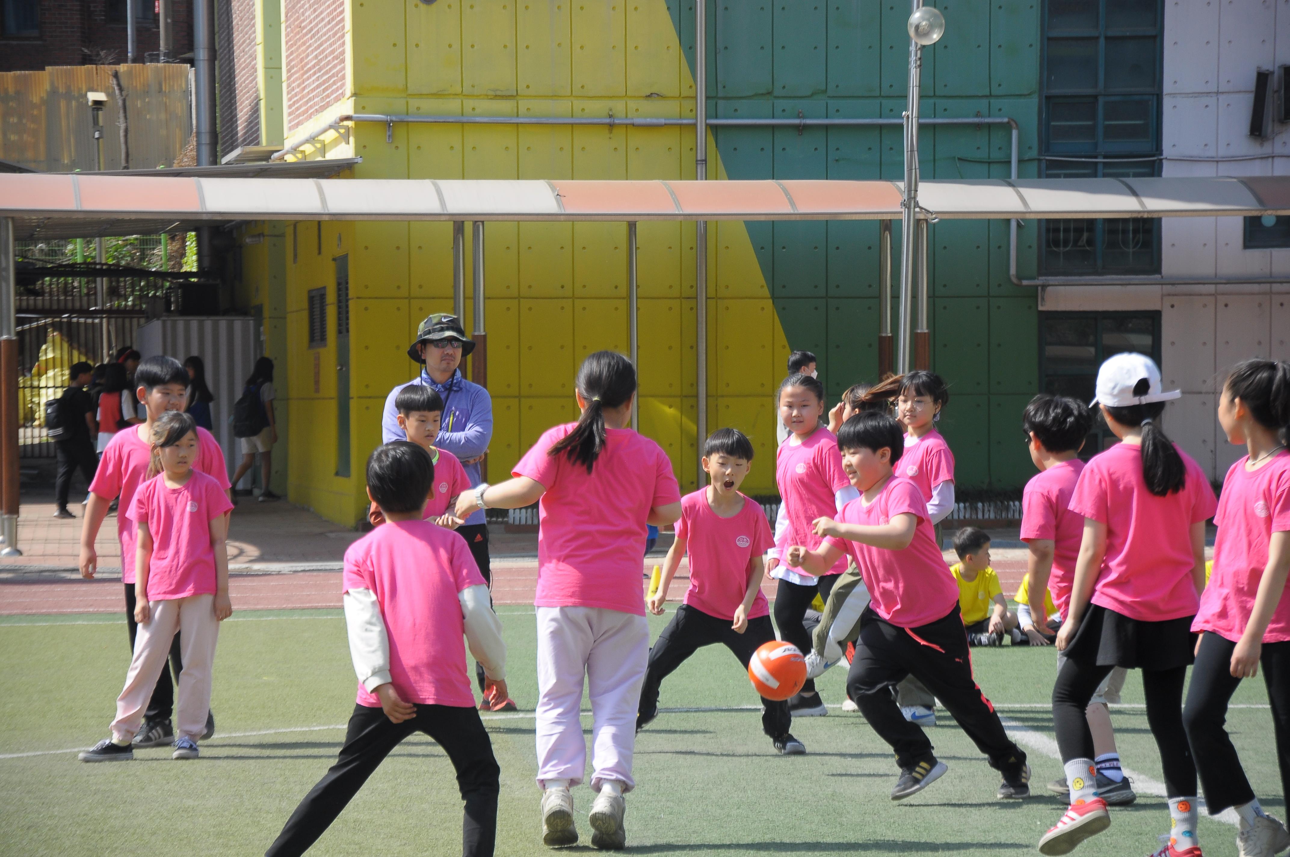 서울장충초(교장노영문)는 어린이날을 맞이하여 5월 2일(월)~4일(수)에 학년별 어린이날 기념행사가 있었습니다. 1학년은 달리기와 청백 판뒤집기, 2, 3학년은 달리기와 피구대회, 4학년은 달리기와 긴줄넘기, 막대 잡기 5학년은 달리기와 단체 줄넘기, 6학년은 달리기와 긴줄넘기 등 즐거운 체육 활동으로 어린이날을 축하하고 기념하였습니다. 협동이 필요한 체육 활동을 통해 친구들과 우정을 다지고 협동의 중요성을 깨닫는 활동이었습니다.