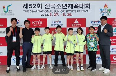 장충초등학교(교장노영문)에서는 탁구부 학생 선수 4명(김현중, 박세훈, 박승훈, 길현규)은 울산 전하체육센터에서 5월 27일(토)~5월 30일(화)까지 펼쳐진 제52회 전국소년체육대회에 출전하였습니다. 장충 탁구부는 단체전에서 은메달을 획득하였고 개인전에 출전한 박세훈 선수는 동메달을 획득하였습니다. 장충초 학생 선수들은 정규 수업을 마치고 매일 훈련에 열심히 참여하며 대회를 준비하였으며, 그동안 갈고 닦은 탄탄한 실력으로 이러한 우수한 성적을 거두었습니다.