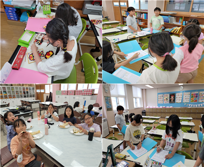 3~4학년은 ‘Fun English with movie’라는 주제로 다양한 영화 속 영어 표현을 익히고 정리하며 학습하였고, 영화에 등장한 문화를 체험해보기도 하고 OST를 익혀 부르는 등 다양한 활동을 했습니다. 또한 하나의 문장을 여러 단어를 활용해 보며 영어로 의사표현해 보는 시간을 가졌습니다.
