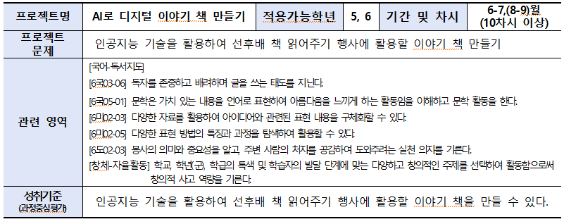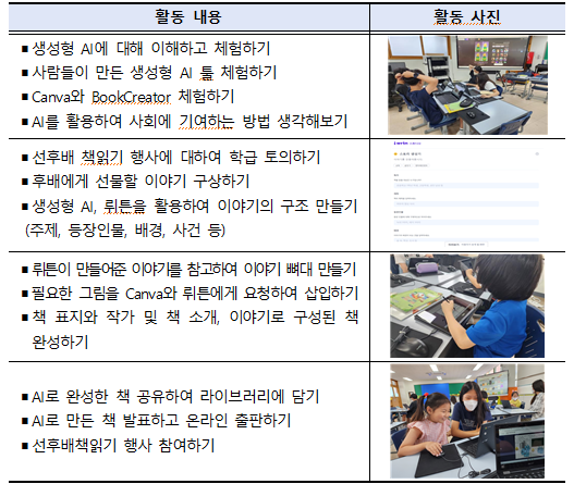 AI를 활용하여 만든 이야기 책으로 선·후배 책읽기 행사 활동하기