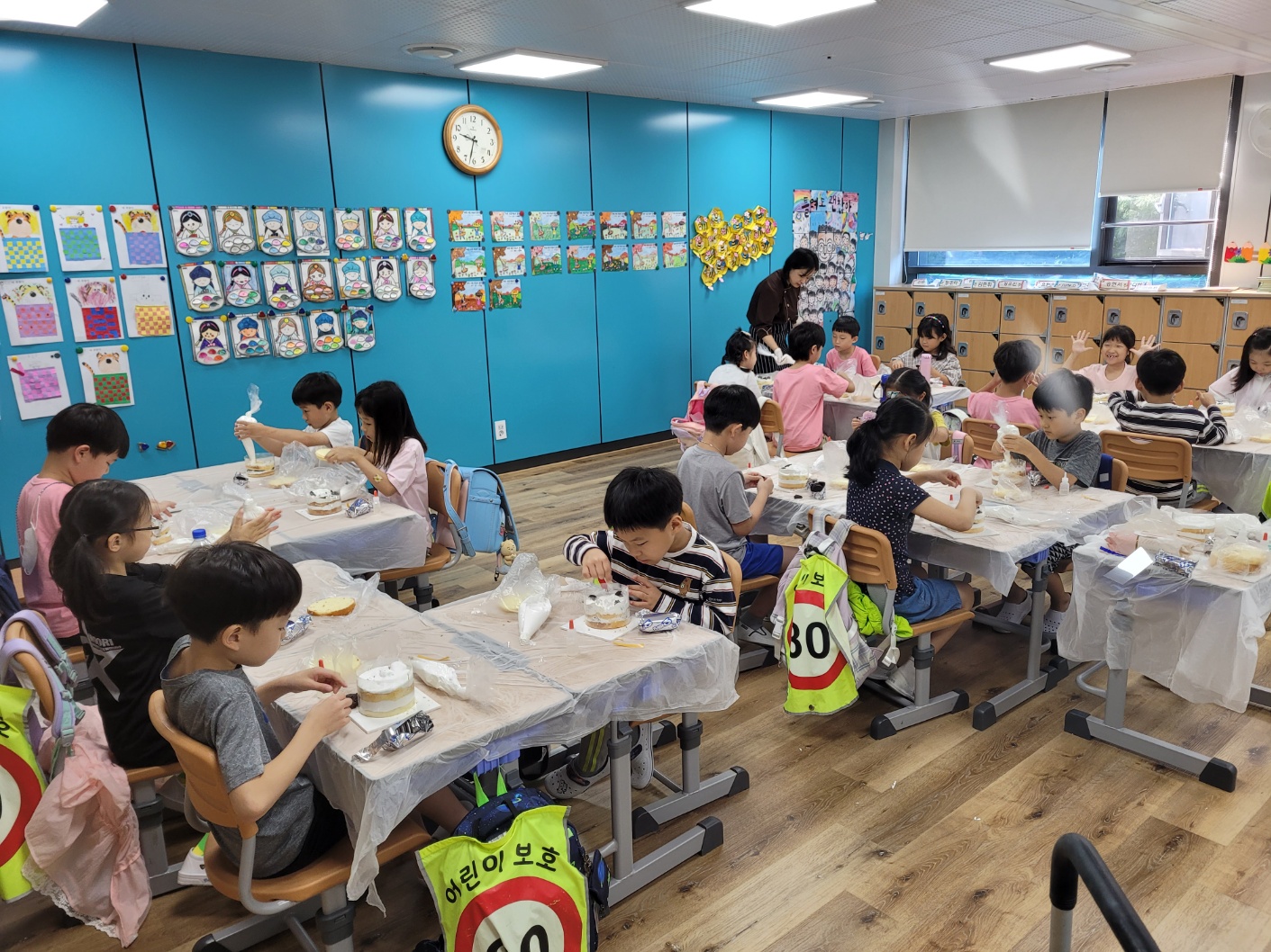 서울 대방초등학교(교장 문상희)에서 9월 20일(수) ~ 9월 22일(금)까지 3일간 1,2학년 학생을 대상으로 꿈잼교실에서 계획했던 ‘나만의 오레오 케이크 만들기’ 수업이 진행되었습니다. 학생들은 강사 선생님의 안내에 따라서 케이크 시트에 시럽과 생크림을 펴 바르고 오레오 쿠키 조각들을 올려 멋진 오레오 케이크를 완성하였습니다. 케이크를 다 만든 후에는 <특별 주문 케이크>라는 동화책을 다 함께 읽으며 독후 활동을 하였습니다. 꿈잼교실의 다양한 프로그램을 통해 자신감 있고 즐거운 학교생활을 할 수 있기를 기대합니다.