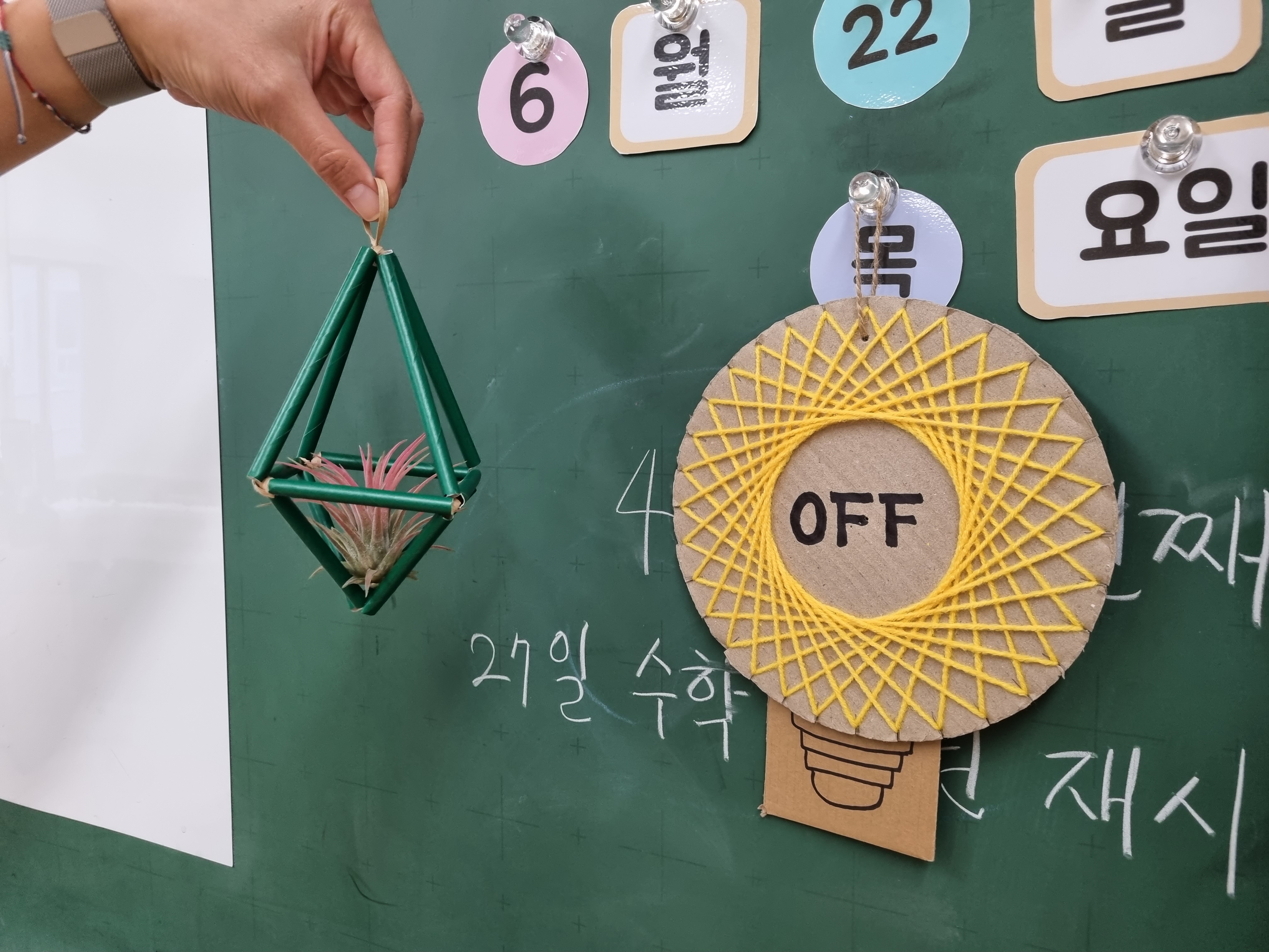공존을 위한 미래교육을 실천하는 서울온곡초등학교(교장 김창희) 별별공감팀은 2023년 6월 21일 서울특별시북부교육지원청 주제별 교육활동 산책 워크숍에서 생태전환교육을 주제로 사례 나눔을 실시하였습니다. 학생의 요구를 반영한 프로젝트 운영 사례를 나누고, 교사의 철학과 역량을 반영한 프로젝트의 기획 방법을 토론한 뒤 공중화분 만들기와 스트링아트 전구 만들기 체험을 진행하였습니다. 함께 교육과정 운영의 역량을 키우고 소통할 수 있었던 소중한 시간이었습니다.