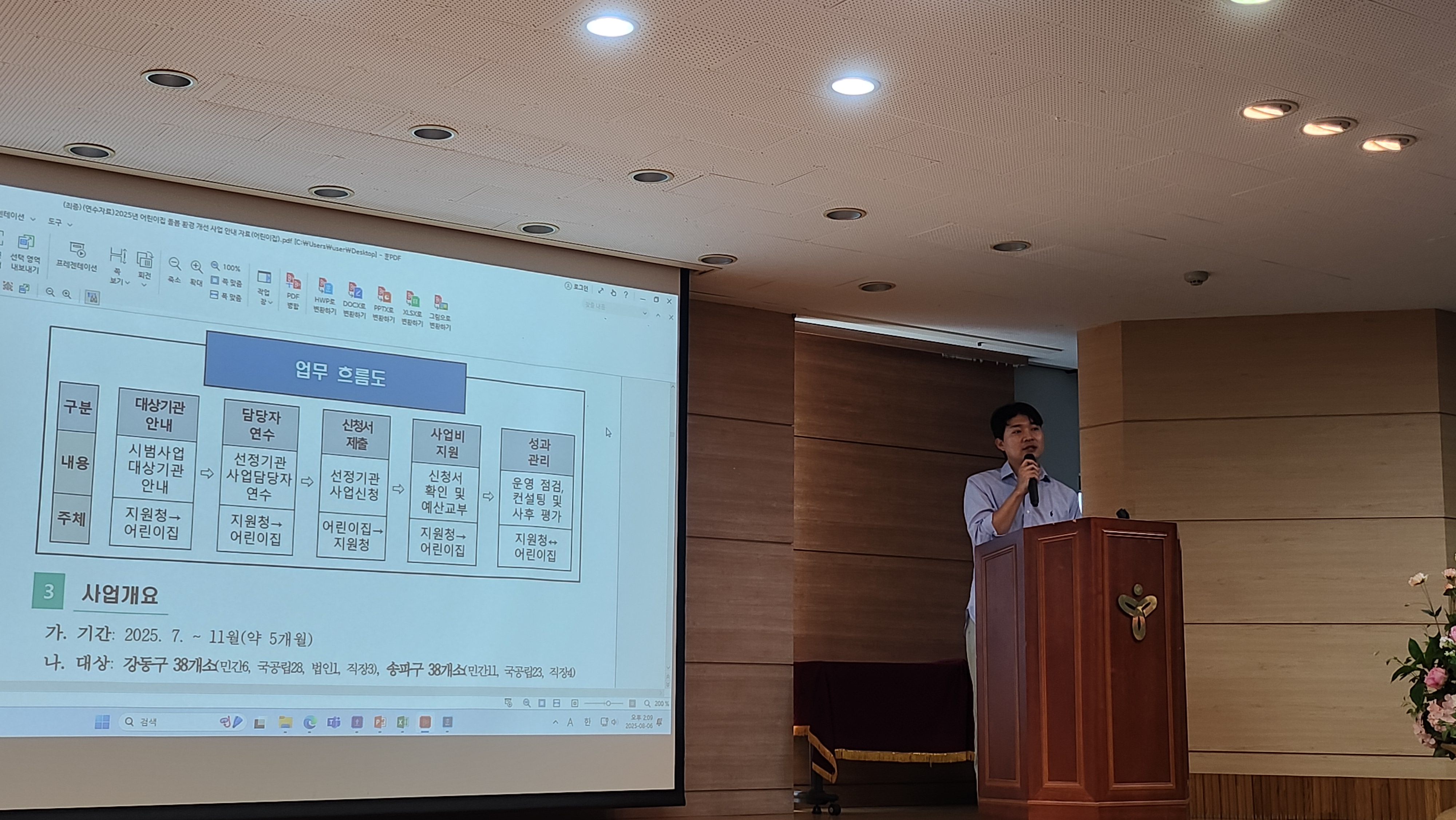 ▢ 서울특별시강동송파교육지원청(교육장 조현석)은 지난 8월 6일(수), 청사 본관 4층 대강당에서 ‘2025년 어린이집 돌봄 환경 개선 사업’에 선정된 강동구·송파구 어린이집 관계자를 대상으로 설명회를 개최했다.
