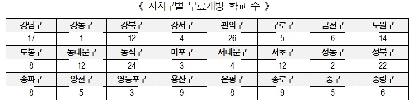 ▢ 서울특별시교육청은 이번 추석 연휴기간 학교시설 개방으로 주차시설이 부족한 주택가에 거주하는 서울시민의 주차난을 해소하고, 부모·형제 및 친지 등을 방문하는 역귀성객의 주차 편의에 도움을 줄 것으로 기대한다고 밝혔다.
