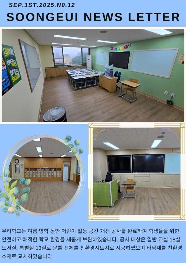 숭의초등학교는 교실 18개, 특별실 13개, 도서실을 대상으로 환경개선공사를 시행하였습니다.