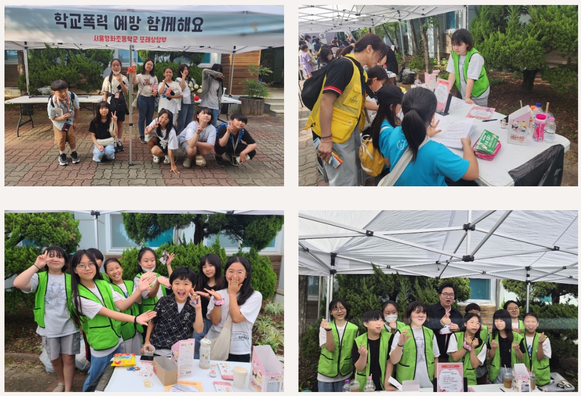 서울영화초등학교(교장 전상애) 또래상담 동아리 학생들이 9/27(토) 보라매공원 내 시립보라매청소년센터 앞마당에서 동작구청에서 주최하는 ‘동작구 학교폭력예방축제 [위로심기대작전]’에 참가하여 다양한 체험거리와 활동 부스를 운영하였습니다.